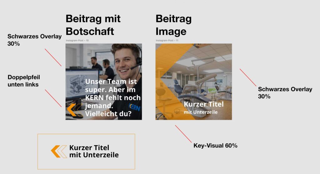 Auf Videos und Imagebildern wird das „K“ als Key Visual eingesetzt, während bei Bildern oder Beiträgen mit informativem Inhalt die Doppelpfeile verwendet werden.