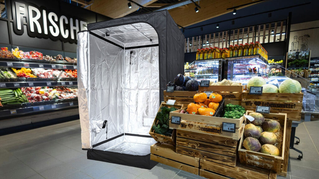 Dazu stellen wir eine „Growbox“ auf – eine kleine, abgeschlossene Box (angelehnt an Growboxen für Pflanzen), die als Aufnahme- und Rückzugsort dient. Hier können Mitarbeitende in Ruhe und mit einem Augenzwinkern ihre Antwort aufnehmen. Die Symbolik ist klar: So wie in der Box Pflanzen wachsen, wachsen auch Menschen bei EDEKA.